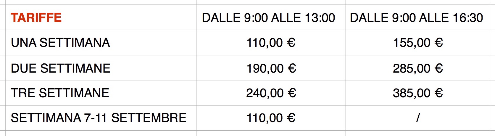 Periodo: LUNEDI 7 SETTEMBRE a VENERDI 11 SETTEMBRE